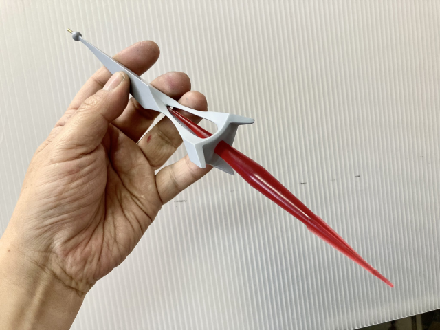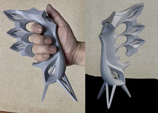 透過3D列印機和電腦不斷加工與修改,讓點火裝置弄成可以完美讓自己的手握住的形狀,而模型已經完成,不過作者還不會止步於此,他要再進一步利用樹酯材料加工。