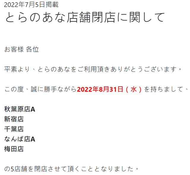 根據官方公告,目前有的秋葉原店 A、新宿店、千葉店、難波店 A 以及梅田店,即將在 8 月底關閉,目前日本僅有的實體店鋪將只剩下池袋店。而未來池袋店也會作轉型,當然後續也會考慮增設新店,可能會以藝廊展覽的形式拓展不同樣貌,也希望支持者別擔心虎之穴就此消失。