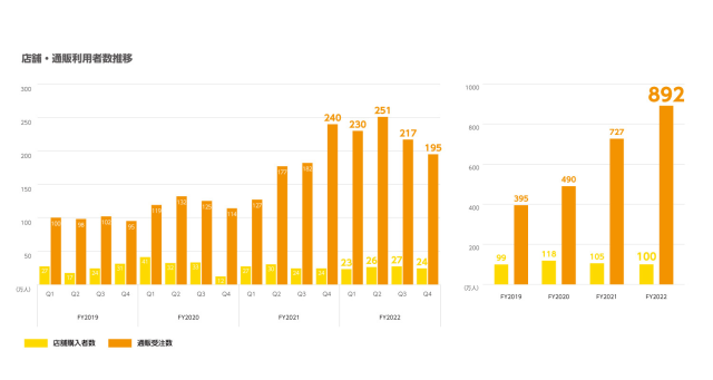 ▼ 虎之穴的財報以及實體店鋪與通販的銷售比較