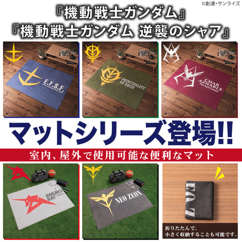 萬用墊本體大小約為寬140×長100公分,平時可以摺疊收納,展開後可以做為居家的桌巾或是鋪設的地墊使用,出外也可以作為野餐墊,絕對是各位鋼彈粉居家旅行必備的好夥伴 XD。推出共五款包含;地球聯邦、吉翁軍、夏亞、阿姆羅與新吉翁,粉絲可以選擇代表自己信仰的勢力購入,展現你的鋼彈魂。