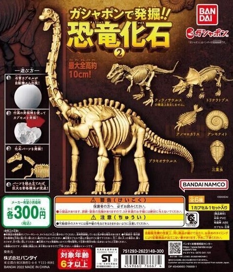 日本 BANDAI萬代玩具公司(株式会社バンダイ)旗下轉蛋事業部 GASHAPON 將轉蛋化為石膏材質的「從GASHAPON中發掘!!恐龍化石」將好評再推第二彈「從GASHAPON中發掘!!恐龍化石2」石膏轉蛋,共有六種化石款式,每轉參考售價為 300 日圓,預計將於 2022 年 07 月下旬發售。