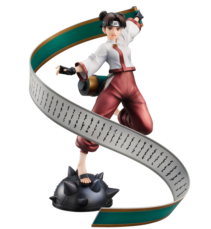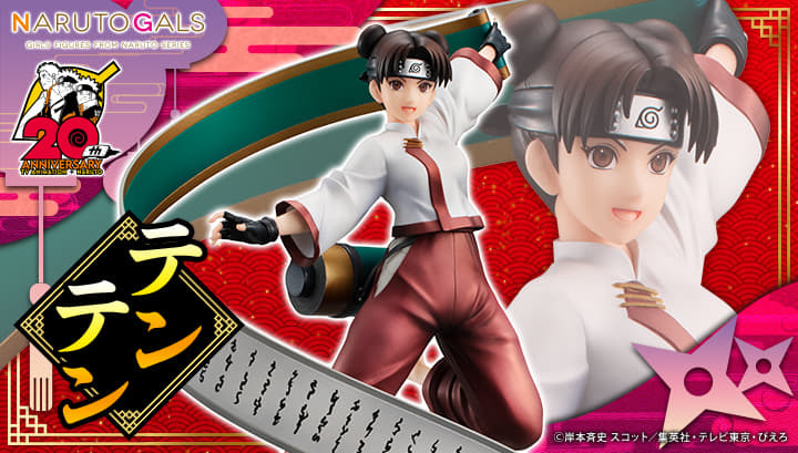 「NARUTO Gals 天天」PVC塗裝完成品,尺寸全高約 24 公分,將展開卷軸的輕盈姿勢立體化,服裝的中式旗袍設計雖然簡約,但透過塗裝展現出面料的光澤質感,並在陰影處加強塗裝,強調立體感。以鐵球為底坐,搭配環繞周圍的卷軸,從 360 度欣賞皆有獨特的美感。天天溫柔開朗的笑容與可愛的包子頭,還原令人印象深刻的造型~
