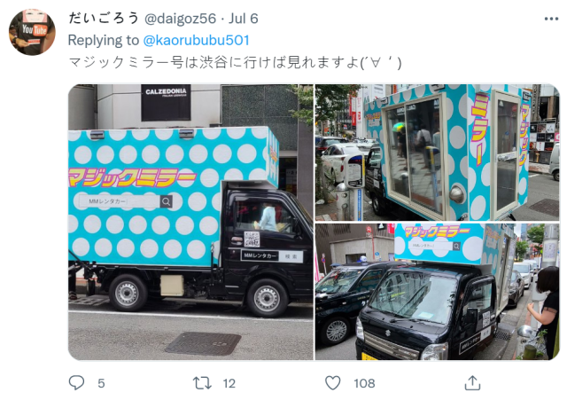 不過網友貼出真正在澀谷遇見的魔鏡號,恩...這台我很熟,我就算沒親眼看過也在很多精彩影片看過 ( ? )
