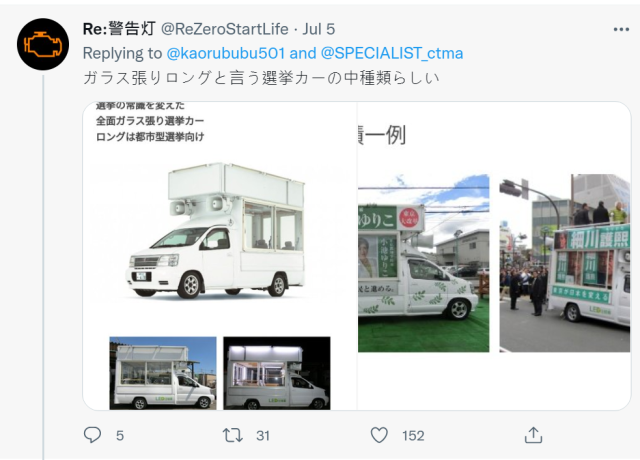 而實際上,日本選舉車輛中確實有這種玻璃車選擇,不過的確不常見,也難怪不少日本網友會覺得怪怪的 ( ? )