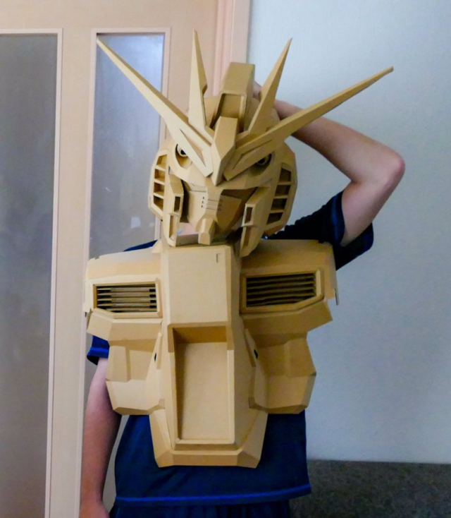 也不只頭盔,推主也製作了可以穿上的鋼彈道具,同樣用紙板製作,可以看出推主的功力非常強大,果然高手都是曾藏於民間阿 !