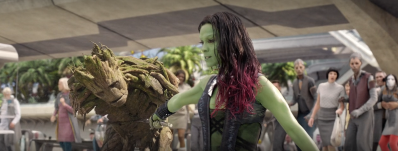 ▼ 《星際異攻隊》葛摩菈首次與格魯特見面時,砍斷了他的雙手。