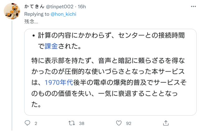 也有網友解釋,這個功能當初就等於是課金請中心幫忙計算,後來迷你的電子計算機普及之後,價值瞬間暴跌,後來也沒有在使用的可能了。