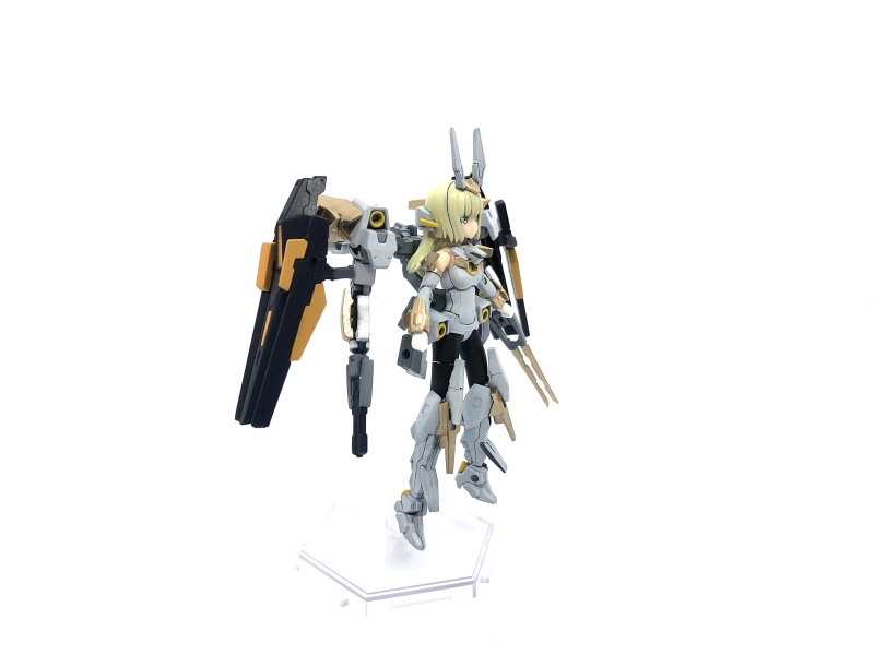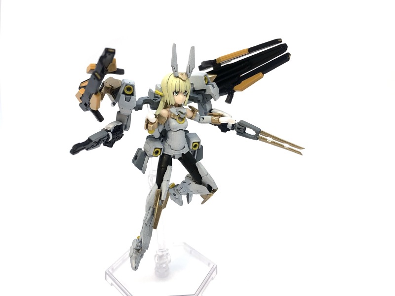對武器、手腕採用遮蓋,推進噴口與胸口則採用筆塗補色,完成後整體造型如下。