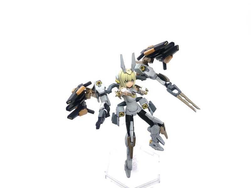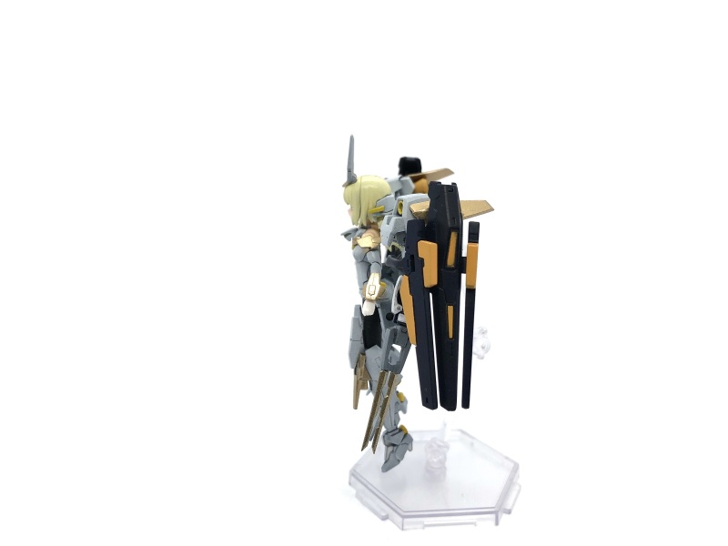小比例 FAG 芭莎,裝甲線條相當銳利,然而所需的補色程度大幅超越其他角色;尤其胸口的圓環既不易遮蓋、筆塗也容易溢色,再加上全身各處未分件的細節,都增加了不少上色時間。