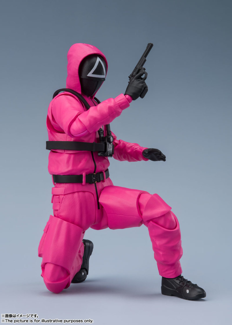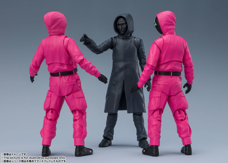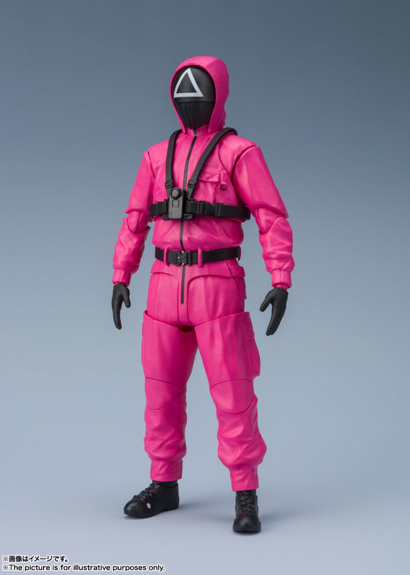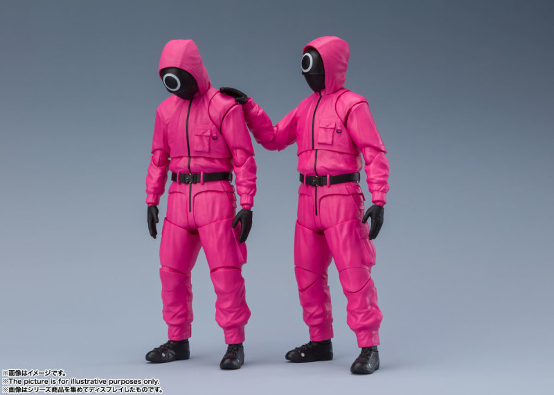 先前釋出商品化消息就引起討論的《魷魚遊戲》系列新作,於 14 日更新了詳細的商品情報。採用相同素體,但在劇中位階最低的「S.H.Figuarts △面具人」,再現令人毛骨悚然的粉紅色工作服。附有手槍和機關槍的武裝裝備,還有劇中印象深刻的棺材禮物盒!而「S.H.Figuarts ○/☐面具人」則是採用替換的頭罩更換角色,道具則是附帶小刀和後背包,能搭配賞玩出各種有趣的場景。