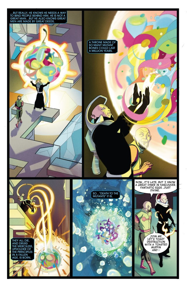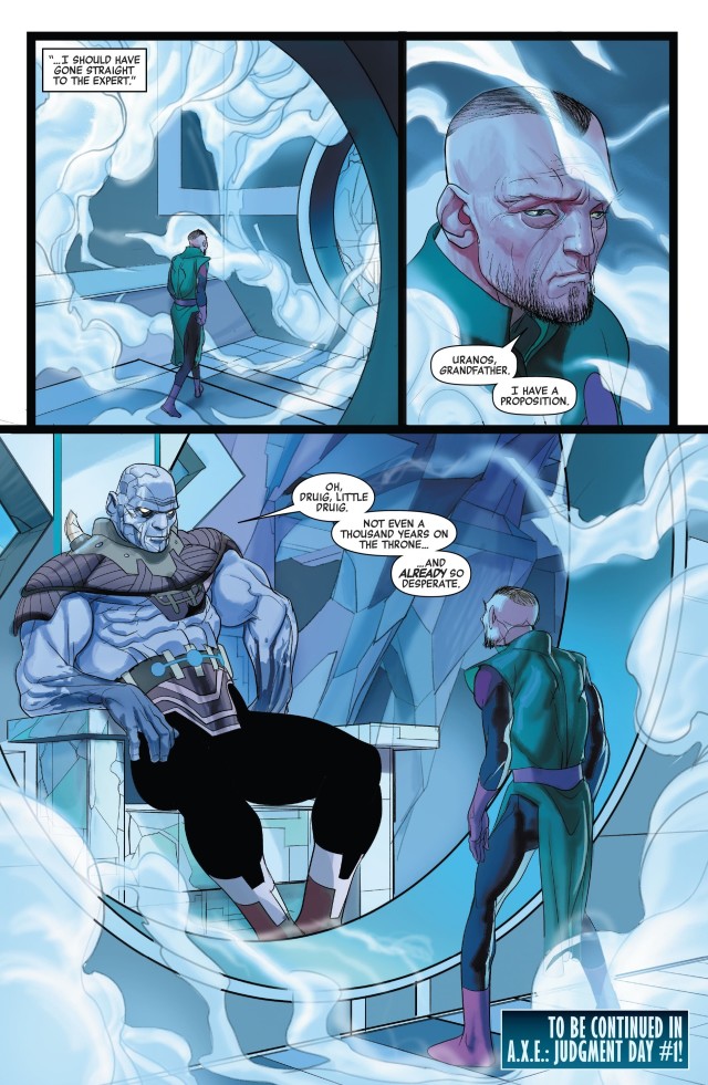 我們還能看到巨輪似乎打算兵分兩路,落敗之席(Seat of Loss)的萬磁王(Magneto)、歷史之席(Seat of History)的Xilo和夢想之席(Seat of Dreams)的Lodus Logos則留下來迎戰烏拉諾斯。Lodus Logos用歌聲製造金屬的能力與萬磁王正好是絕配。