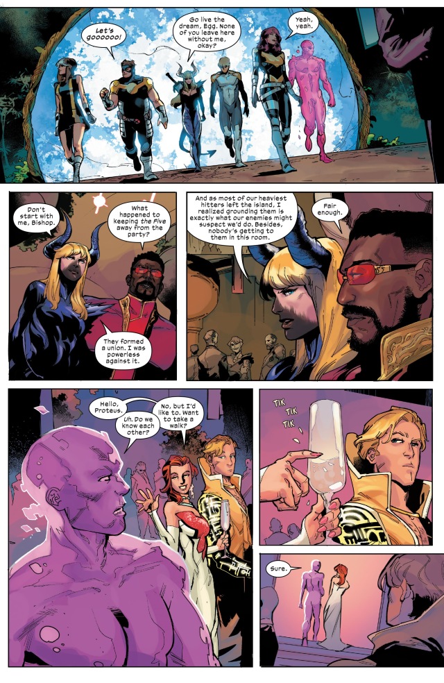 由於變種人復活的事情被公開,隊長指揮官主教(Bishop)為了確保聖五人組(The Five)的安全而下令讓秘客(Magik)把他們五人關起來不能去參加慶典,以避免他們遭到有心人士傷害。