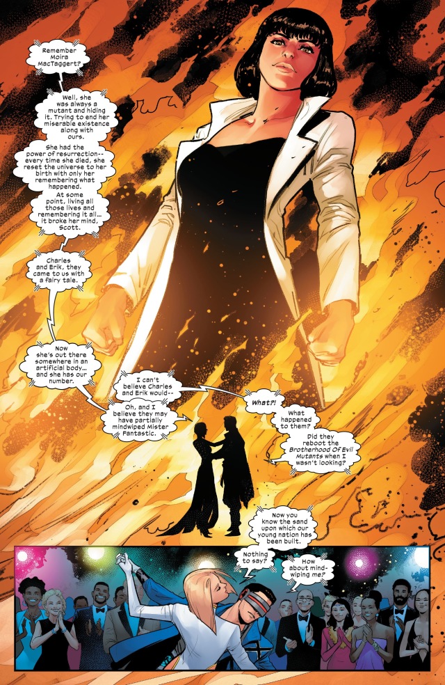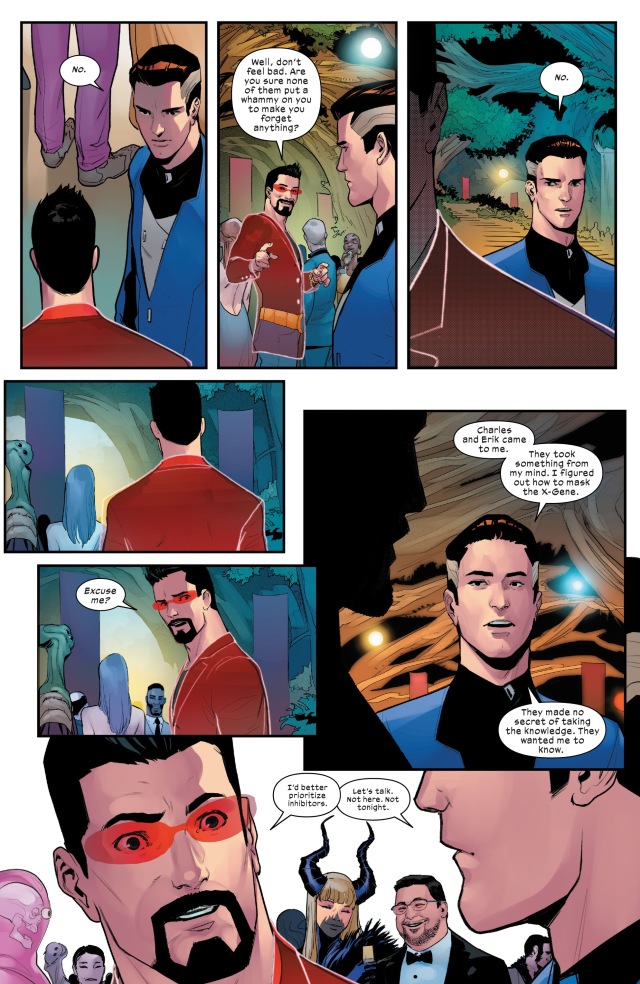 因為得知變種人永生的消息而到場的鋼鐵人(Iron Man)和神奇先生(Mr. Fantastic)此時卻提到了幾年前在《X-Men/Fantastic Four》故事中發生的一段事情。