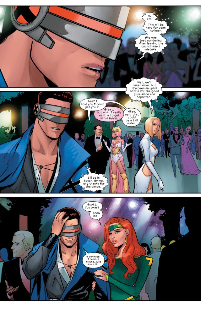 而整個晚上都在避開獨眼龍的白皇后終於在他和驚奇少女(Marvel Girl)的聯手之下被迫交換訊息:他發現了紅蘭局的靜滯博士其實與克拉科的凶兆先生(Mr. Sinister)是同一個人!