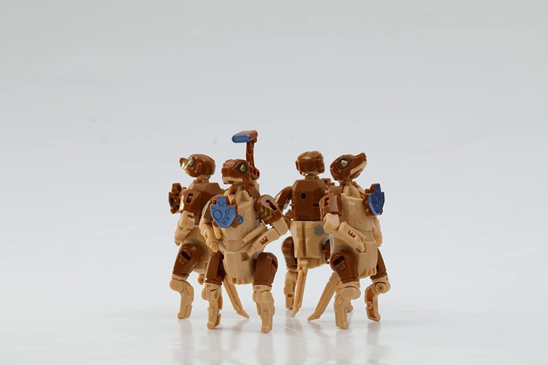 四隻狐獴分別在胸前有著東西南北的標誌,並在胸口有可以收納/展示的小盾牌,背部的孔洞可以安裝偵查背包零件,偵查包也能變型為導彈發射器,搭配小手上的腕砲,這組沙漠突擊小隊的戰鬥力不容小覷!