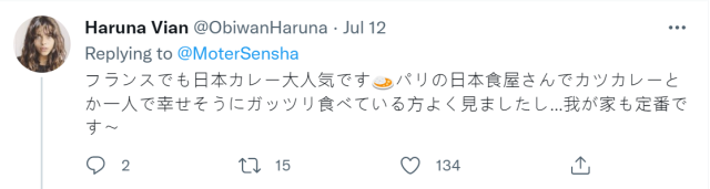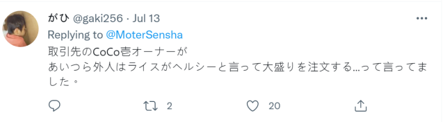 原討論推文提到,對於一部份的美國人,對於日本咖哩彷彿有著先天性的脆弱。吃到有如中毒般一臉凝重的表示 : 「不想回國了。」、「在自己的國家沒有咖哩。」
