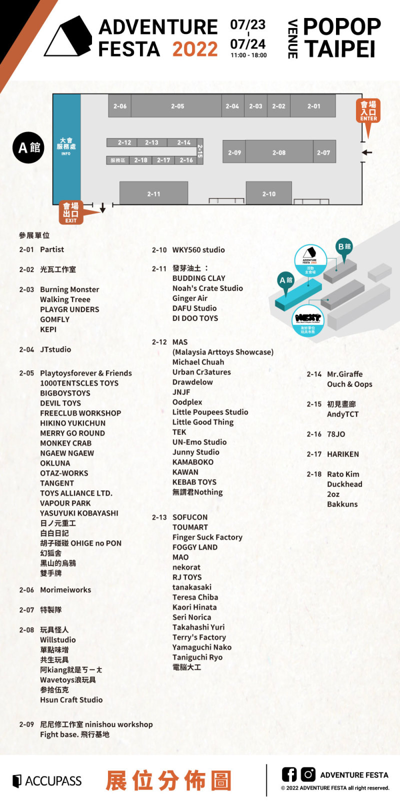 ADVENTURE FESTA 特別邀請到幾位圈內資深的幕後推手,包含策展、平面插畫與原型造型師前輩,同樣以角色品牌的身份,於活動期間分享其豐富的經驗談,希望能加速創作者共同收穫冒險的成果,這樣的形式也是國內同類型展會首見,不僅讓創作者們有更多自由展現實力的舞台,更希望實際帶來傳承與協助,讓更多懷抱夢想的人們願意投身創作的行列。冒險不會孤單,AF 將致力與各位創作者共同面對每場刺激的挑戰!