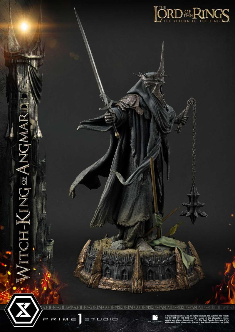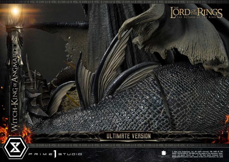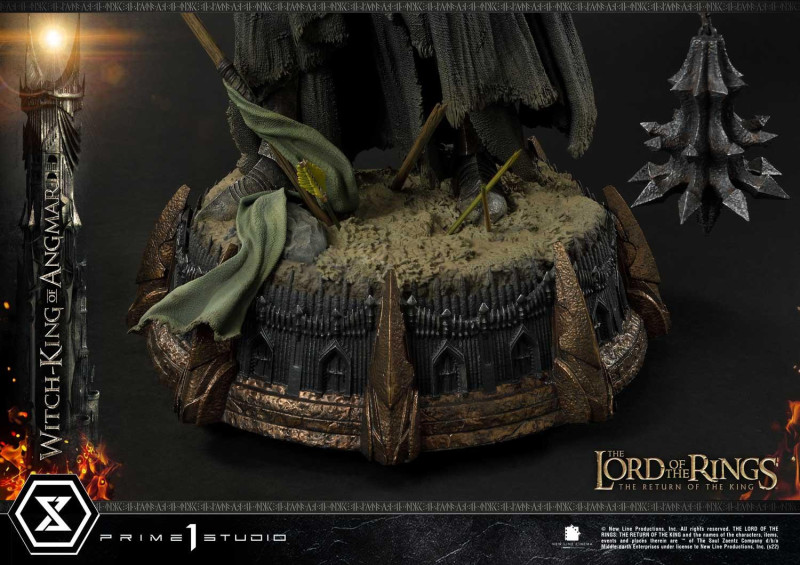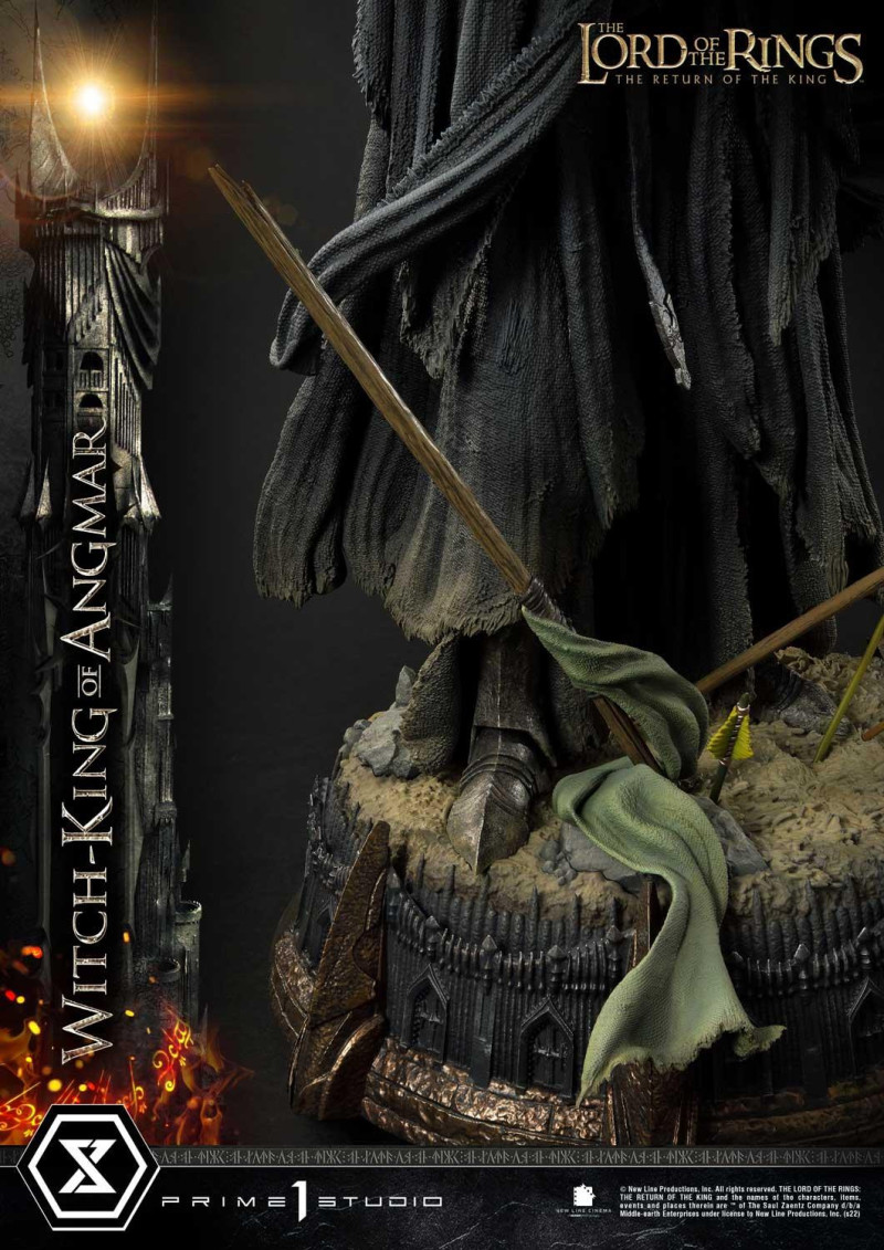 本作高約 70 公分,將「安格馬巫王」以右手持劍、左手拿著流星鎚的霸氣姿態立體化,挺立站姿搭配招牌頭盔、尖刺鎧甲,以及形塑出逼真飛揚感的破舊服裝,展現出無人能擋的強悍氣勢,以帕蘭諾平原(Pelennor Fields)為題設計的底座當中還有斷裂的法杖、洛汗旗幟、精靈弓箭、位於魔多的巴拉多(Barad-dûr)要塞牆壁......等劇中元素,在表現戰爭激烈程度的同時,傳達出《魔戒》的世界觀。