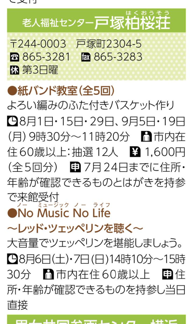 其實這是橫濱市扶老中心一直以來都會舉辦的活動,其中有音樂會、爵士咖啡饗宴或是手工藝製作等,讓這些超過 60 歲的長輩能夠培養不同興趣,並提高他們對生活的熱情,更促進認識朋友,達到長者能夠互相扶持的效果。