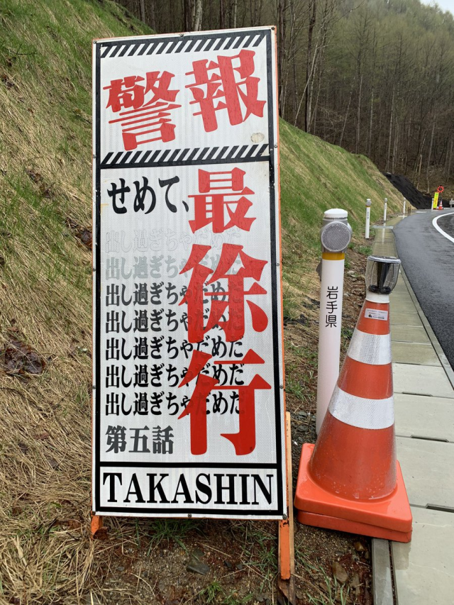 想到警戒告示,想必各位會想到《新世紀福音戰士》的 MAGI 螢幕風格,這個讓人看到就想到 EVA 的視覺效果,當然也會出現在施工告示牌上 XD。不得不說,真的很契合,擺起來超吸引人注意的 !