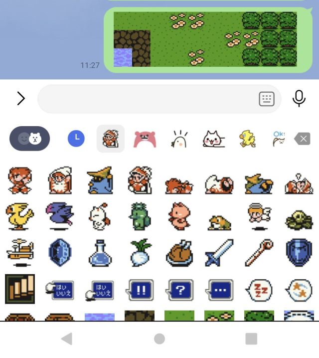 「FINAL FANTASY 點陣風表情貼」是為紀念系列35週年所推出的,有許多初期作品中大家熟知的元素,不僅能讓人喚起過去的回憶還能讓人發掘出新玩法,近期就有許多網友在推特上分享他們怎麼利用這表情貼,看到表情貼上有許多草地、花朵、河流等元素,於是他們就利用這些拼貼出一張地圖,沒想到這才是這個表情貼真正的玩法嗎!?