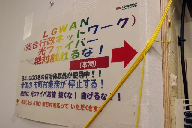 原來這只是一個玩笑文宣,拔掉不會影響全國城鎮業務,頂多...住附近的某戶網路會掛掉。不過這種光纖電纜放在外面裸露真的滿危險的,應該要有正確的方式保護。不過文宣上都打上 LGWAN (Local Government Wide Area Network) 網路電纜線,不免用公家機關的名義有欺騙的嫌疑,要開玩笑還是要拿捏分寸阿 QQ。