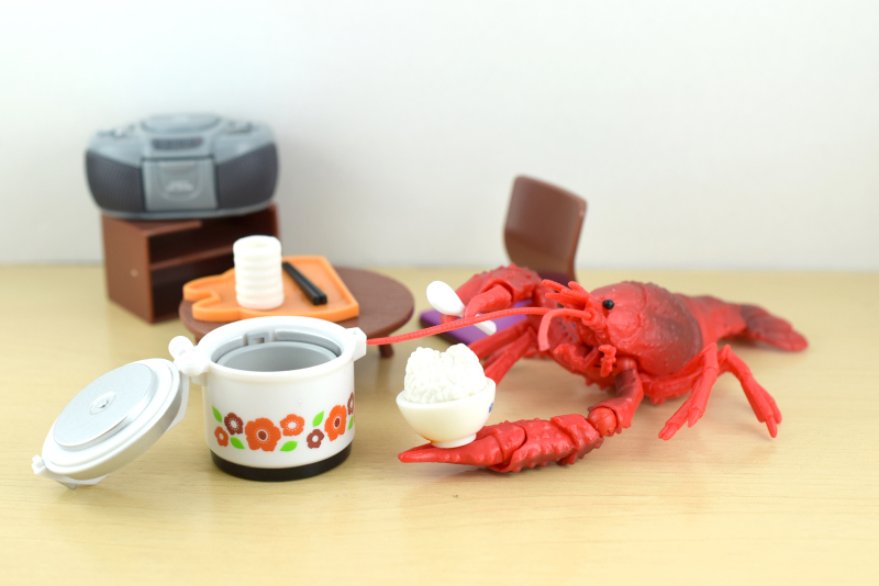 「小龍蝦β」轉蛋,與前作相同,全長約 137mm ,第二彈收錄有施加陰影塗裝的紅色小龍蝦、一手小鰲的藍色小龍蝦,以及透明龍蝦三款。除了仔細再現小龍蝦甲殼上粗糙的尖刺、蝦鬚等,雙螯、腹部、蝦尾等處更設計有 9 個可動關節,能靈活地賞玩各種姿勢,搭配微縮轉蛋或是生活場景,賞玩豐富的趣味造型!