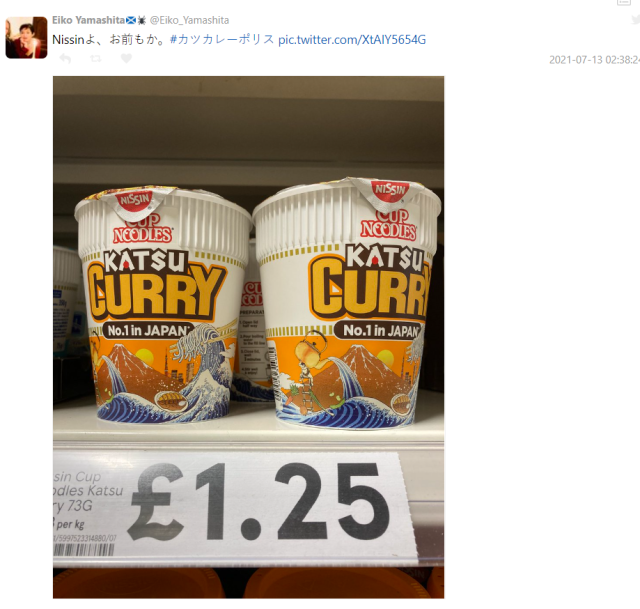 先前我們介紹美國人熱愛日式咖哩的報導,可想見這道料理在外國人心目中代表日本美食的地位。不過在英國,似乎日式咖哩都被稱為「豬排咖哩」( Katsu Curry,カツカレー ),這樣的稱呼卻引來了部分日本人的困惑,因為不少當地販售的日式咖哩是沒有肉的。而指正的朋友卻被稱為「豬排咖哩警察」( カツカレーポリス ),也成為日本推特網友的話題。