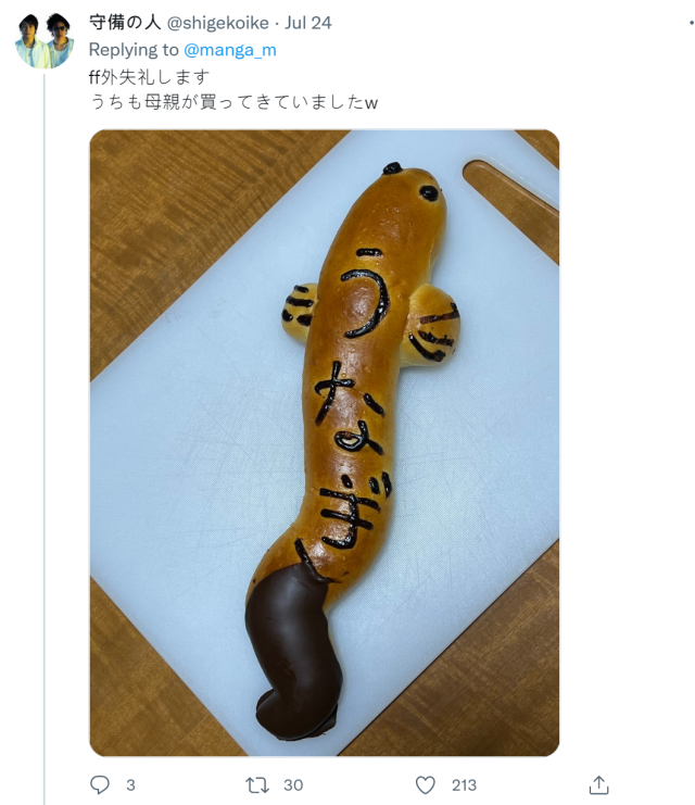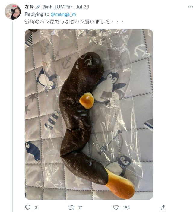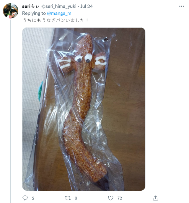 其實,每年的 7 月 22 日是日本的「鰻魚日」(土用の丑の日),過去也都會在此時例行性的推出「鰻魚造型麵包」,但推主這隻...有點太醜了...。不過也有不少網友買過,看來「鰻魚造型麵包」真的...意外的很夯阿 www。