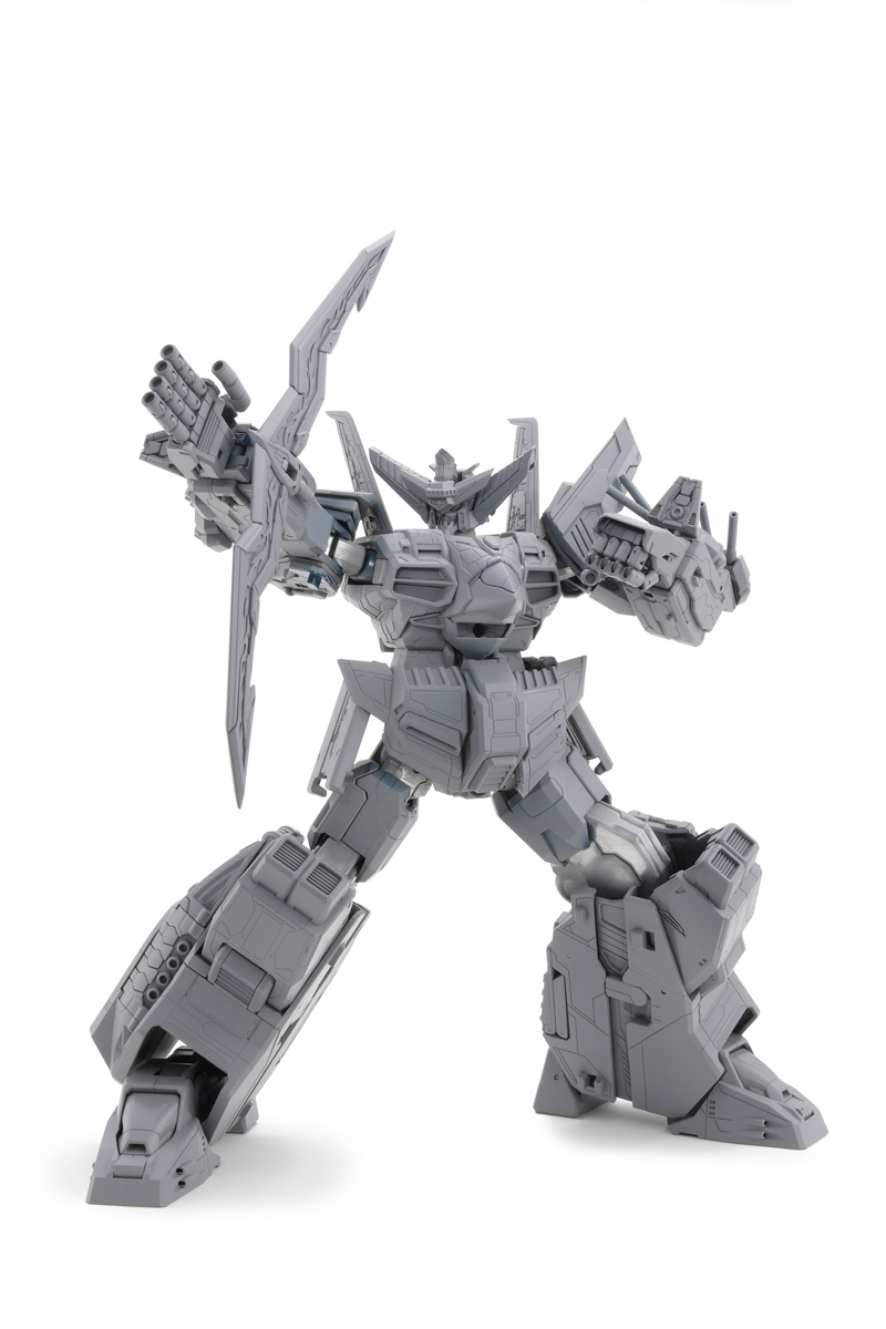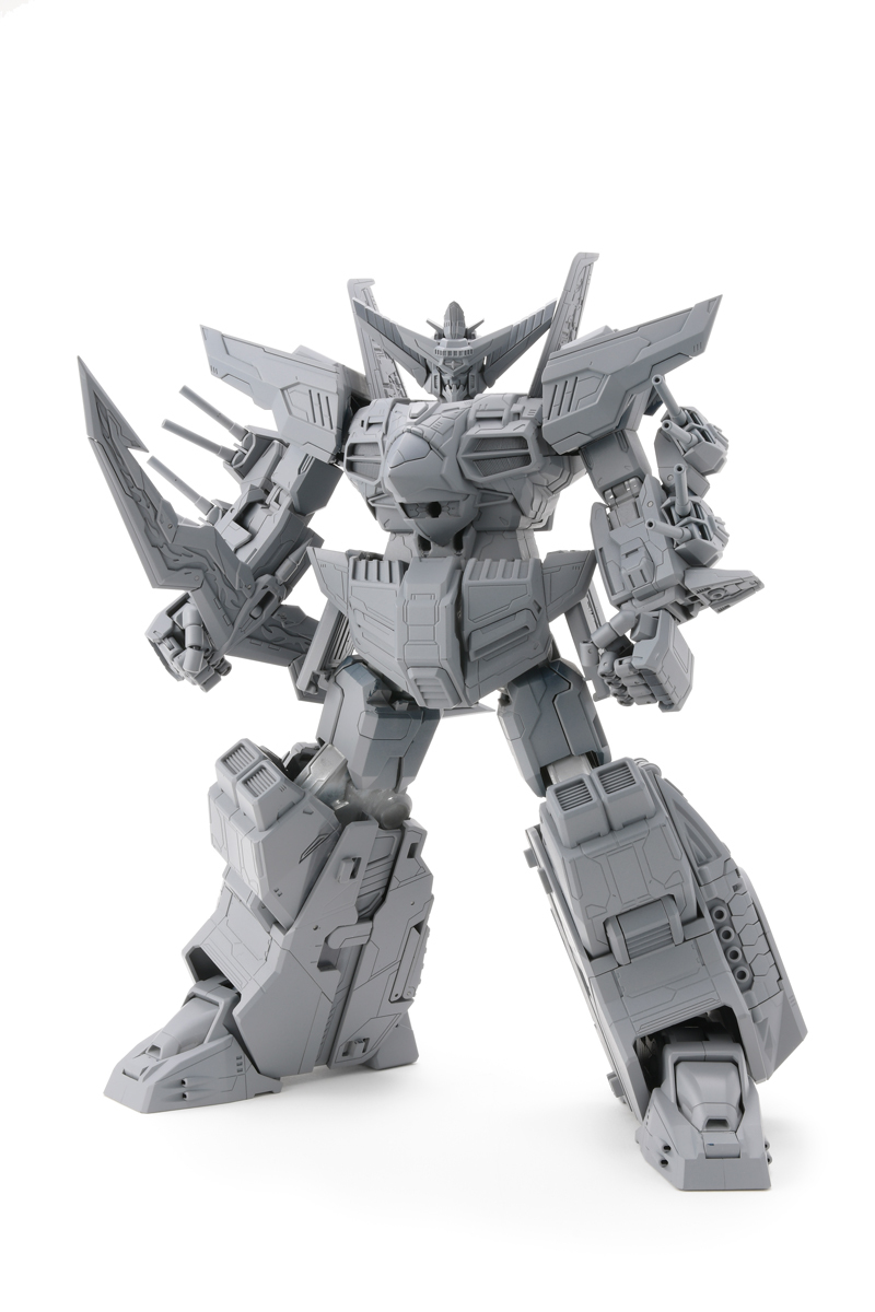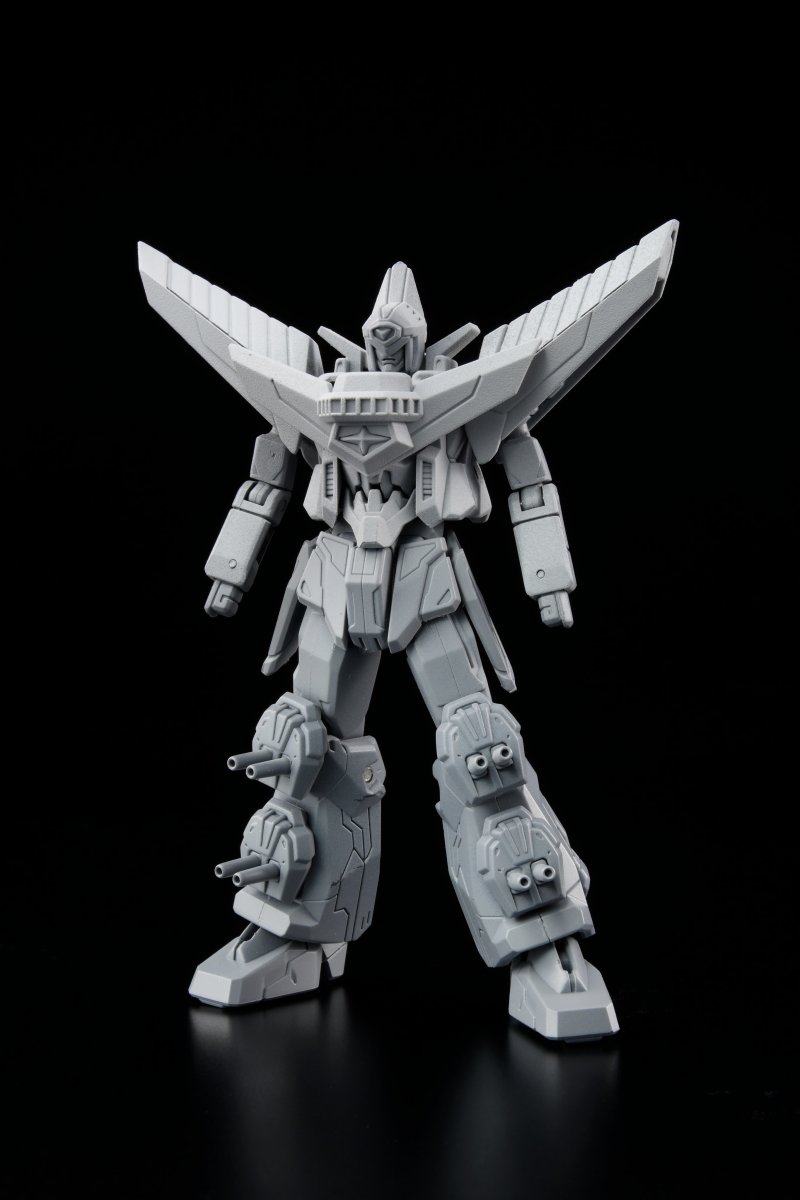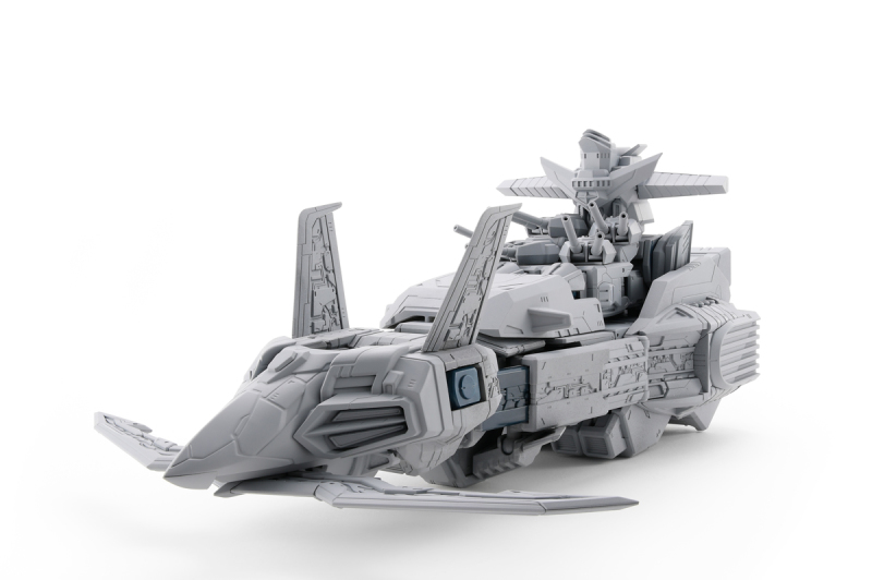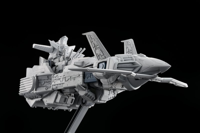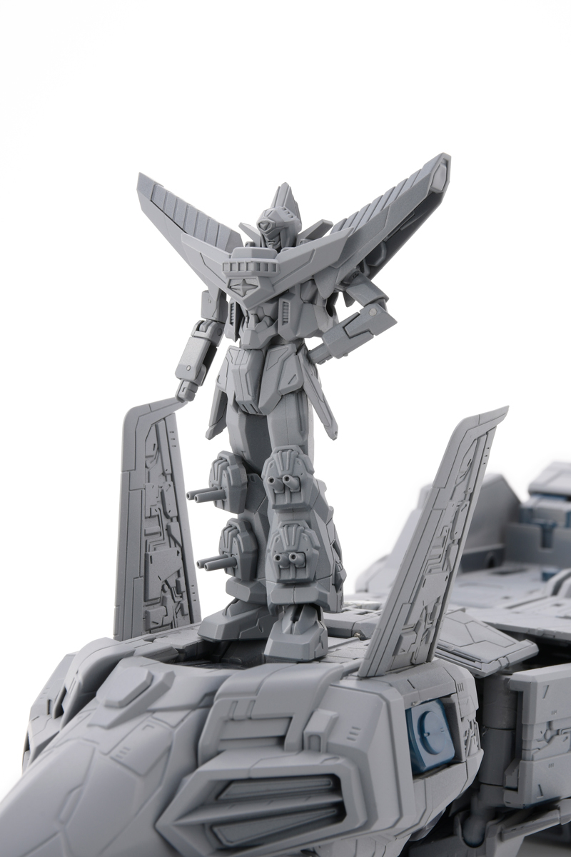 相比半年前公開的版本,此次展出的原型在細節上有些許變化,包含頭部比例、胸部與腿部等多處的刻線、小腿後方的裝甲設計等多處。不過整體依舊是具備 30 公分魄力尺吋、高密度的裝甲線與機械內構、可動炮台等帥氣特徵。同時也首度公開變形後的 J方舟形態,將艦橋與砲台分離出來的J 飛鳥也能變形成戒特,尺寸小巧的戒特設有豐富細節與可動關節設計。