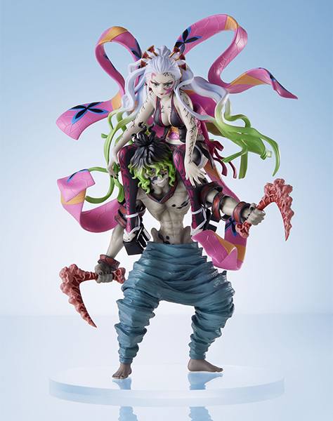 「ConoFig 墮姬與妓夫太郎」無比例塗裝完成品,以ConoFig系列「恰到好處」為理念,尺寸全高約 20 公分,在約一手大小的尺寸中展現精美細節與毫不馬虎的高質感,將墮姬坐妓夫太郎肩上的豪華造型立體化!妓夫太郎詭異的淺灰色加上異常扭曲、骨瘦如材的身體與凸出的脊椎骨等造型如實打造;鬼化的墮姬,大膽的露出龜裂的白色肌膚,頭飾、臉上的花妝和煩死人不償命的纏繞布、頭髮漸層等細節也有精彩的表現~