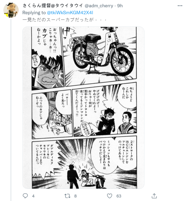 ▼ 這該不會是 Supercub 吧 ? ( 動畫《本田小狼與我》主角小熊的車 )