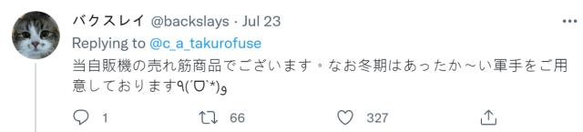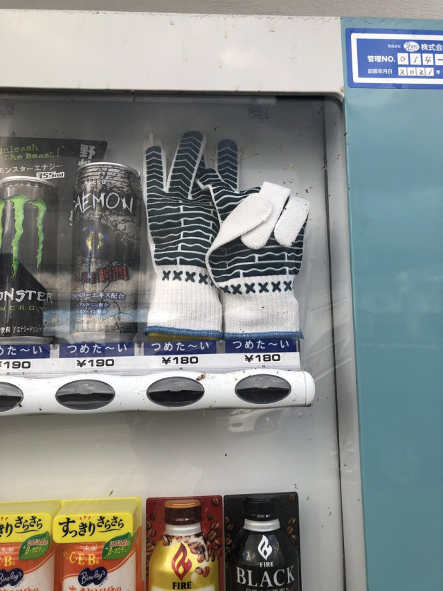 這個趣味的「保冷手套」,最近也在日本推特上引起話題,因為它看起來就是個工作手套而已...放在自動販賣機中,掉出來就是一個...冰過的手套,讓你一摸就有著被冰冰的手撫摸的感覺,或許在夏天有種療癒感 ( ? )