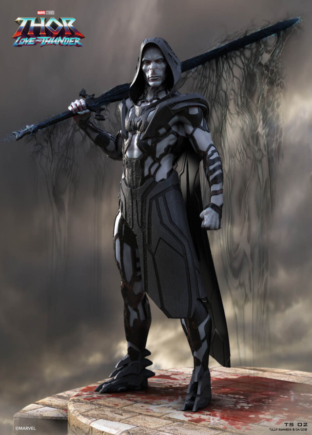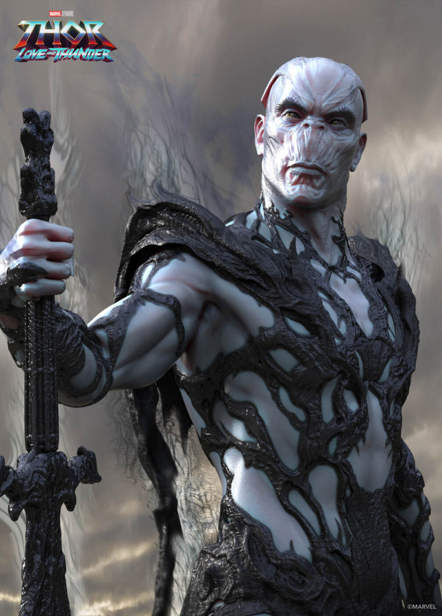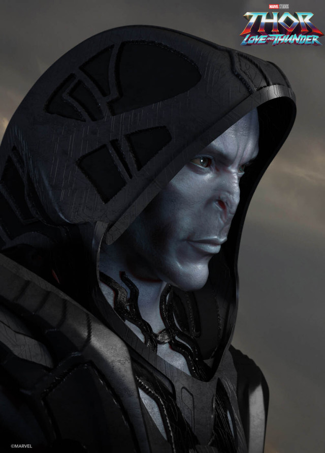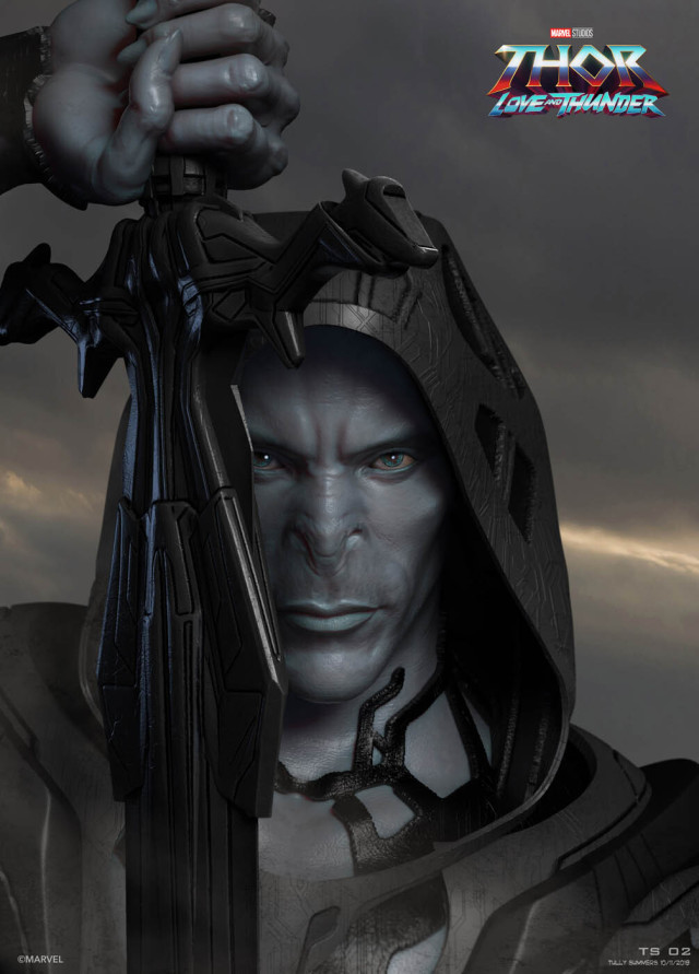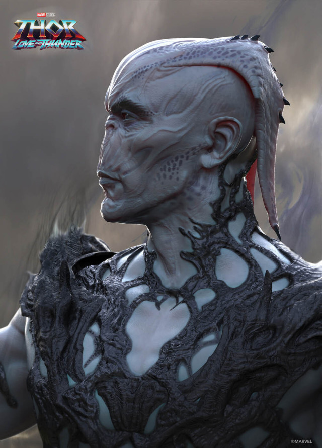 其他角色的部分,則還有決定「魔改」的反派屠神者格爾,雖然當時導演泰卡·維迪提(Taika Waititi)解釋大改的理由,是為了避免與《哈利波特》(Harry Potter)中的「佛地魔」過於相似,不過從繪師Tully Summers分享的初始概念來看,似乎多少也能夠理解導演決定改變外貌的理由了。