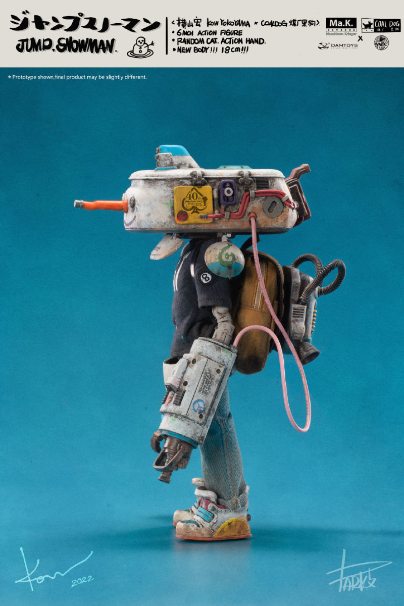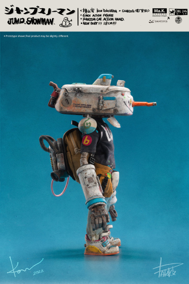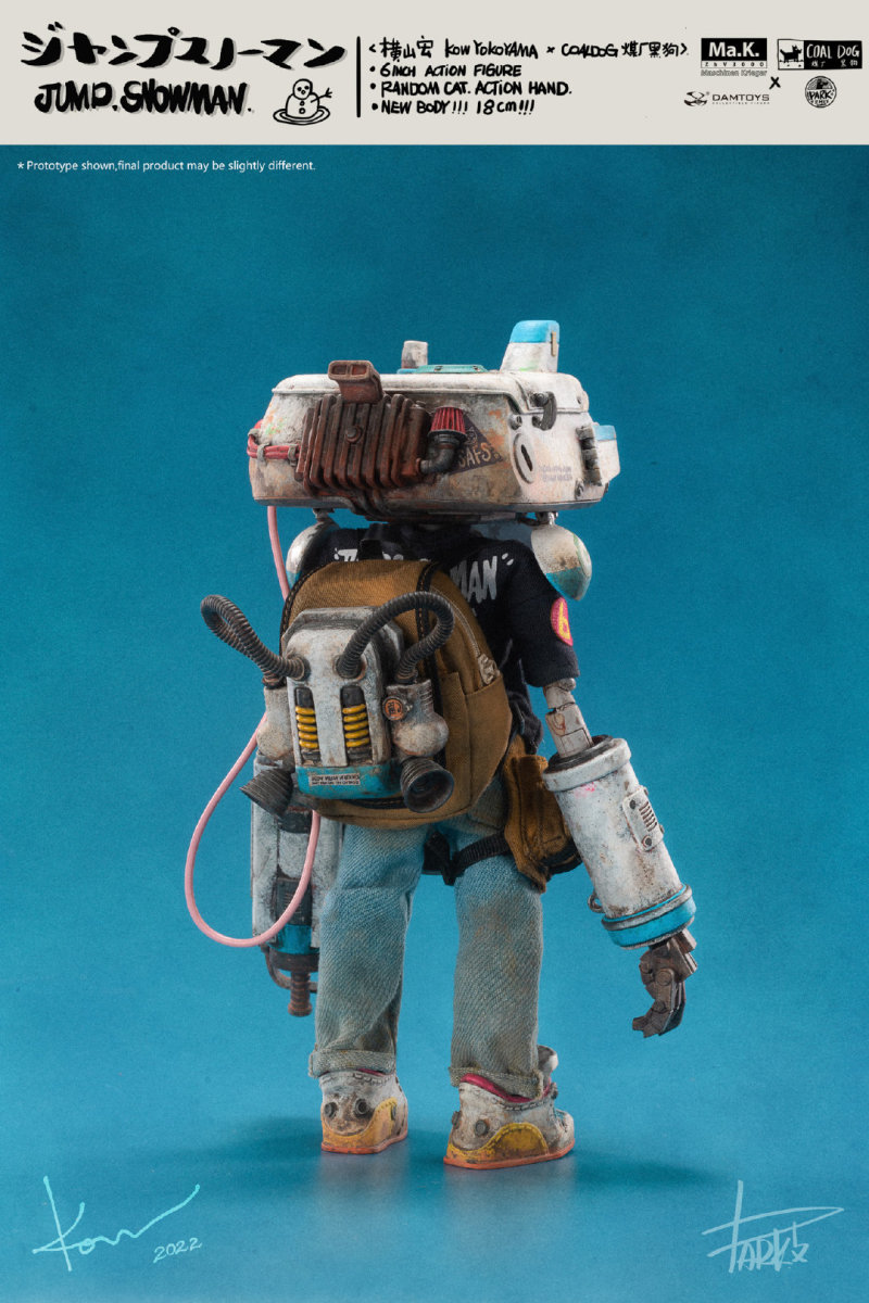 由 DAMTOYS、日本科幻軍事教父「橫山宏」、煤廠黑狗(Coal Dog)工作室設計師「Parkzhi」三方攜手,在推出兼具科幻氛圍與懷舊生活感的「GansBoy - 社長」之後,日前再度發表紀念《Ma.K》40 週年的最新商品「跳躍雪男」(ジャンプスノーマン)6 吋可動人偶!預計 2023 年第一季發貨。