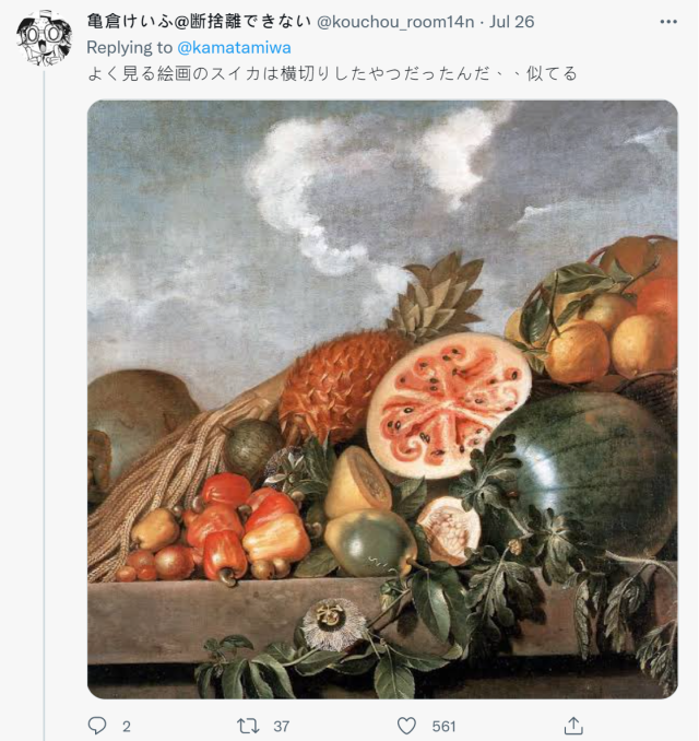 ▼ カマタミワ畫的西瓜橫切面讓網友想到這個...