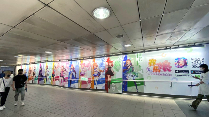 為了讓更多人能夠感受到《賽馬娘Pretty Derby》繁體中文版遊戲的魅力,官方展開一系列廣告宣傳,於台北捷運西門站與桃園捷運高鐵桃園站打造了沉浸式賽馬娘主題捷運站,在燈箱、牆面、掛版上都充滿著賽馬娘們的可愛身影,不僅吸引了許多熱愛《賽馬娘Pretty Derby》的粉絲前往打卡留念,更有三立、東森、TVBS等多家媒體抵達現場進行報導。主題站佈景目前預計展示至7月31日,歡迎訓練員們前往打卡參觀。