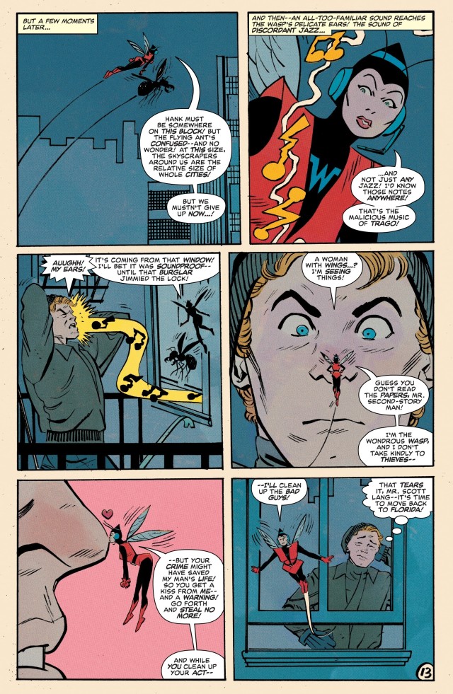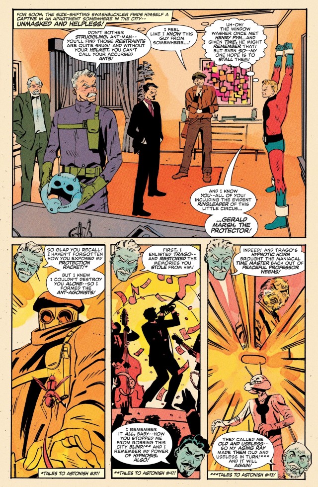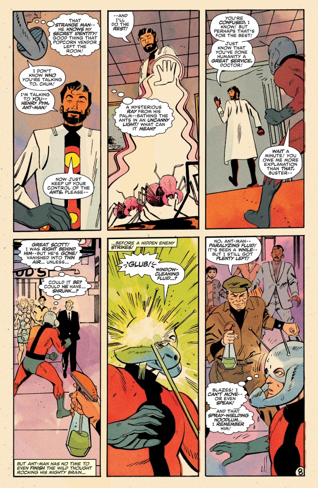 而回到了畫風古老的白銀時代漫畫以後,不只畫風,就連敘述故事的旁白都變回了非常古老、非常Stan Lee/Jack Kirby的形式!而初代蟻人正遇上了大危機。