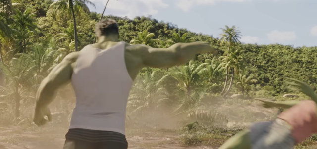 浩克把珍妮佛一拳揍飛,顯然致敬《復仇者聯盟》電影中浩克把索爾揍飛的場景。