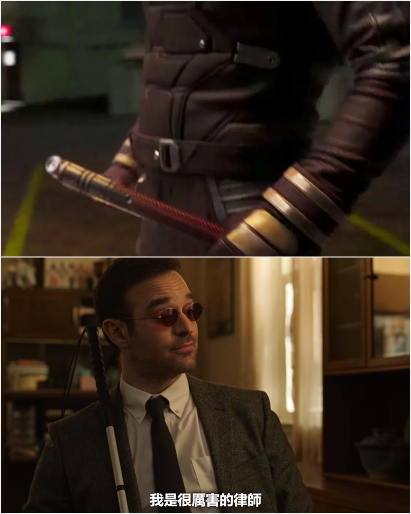 預告最後一幕 — 也是整支預告最讓人興奮的一幕 — 也就是一位身穿紅黃相間戰服的神秘人士,拿著標誌性的摺疊棍登場 - 也就是夜魔俠!在《蜘蛛人:無家日》短暫以「很厲害的律師」短暫亮相後,這次總算要以街頭英雄的身分回歸MCU!