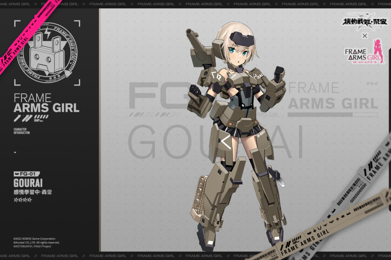 《機甲少女 Frame Arms Girl》是壽屋以同名模型系列為原作展開的電視動畫,並邀請到日本兵器娘始祖「島田文金」擔任人物原案、知名機械設計大師「柳瀨敬之」負責角色機械設計。