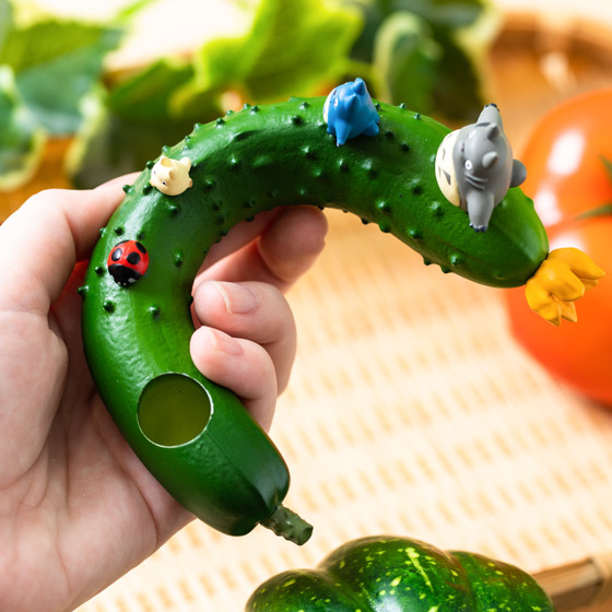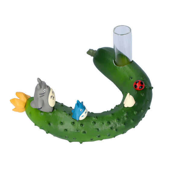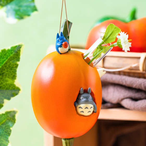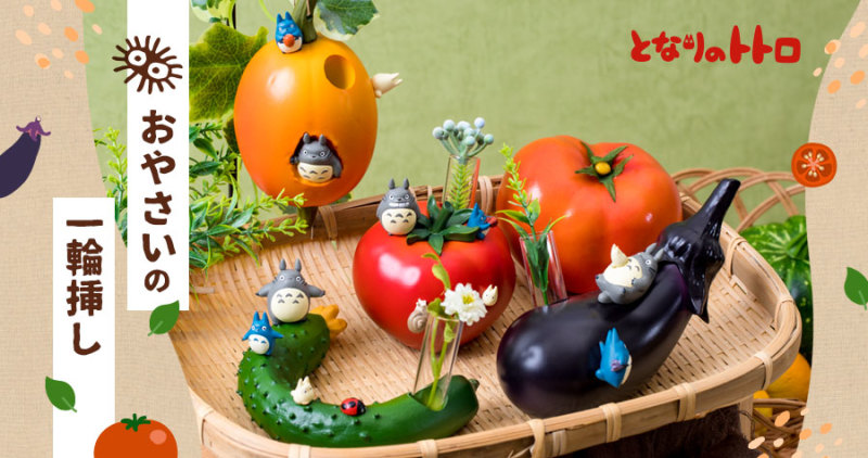 將一枝植物或花卉簡單插至瓶裡,象徵純粹美的「一輪插」花器,以《龍貓》為主題,推出夏季野菜系列,將龍貓、小白龍貓躲藏於各種新鮮野菜中、放鬆玩耍的模樣化為小口徑的花器,共有番茄、茄子、小黃瓜、王瓜四種款式,除了精緻且具有巧思的蔬菜造型,更有擬真的光澤塗裝,讓人感受到夏日蔬果從產地直送的新鮮感!生動的龍貓加上簡約線條的玻璃瓶器,為居家環境增添萌到不行的可愛生氣!