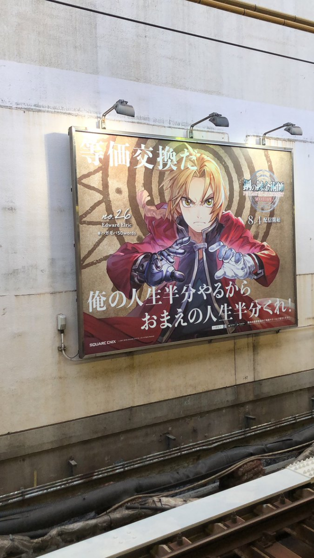 手機遊戲《鋼之鍊金術師 Mobile》即將在 8 月 4 日在日本正式上線,看來廣告看板宣傳也成功博得網友注意,宣傳費值得了阿 XD。不過不知道遊戲本體如何,或許可以等到網友分享遊玩體驗後再來考慮要不要載來玩囉~