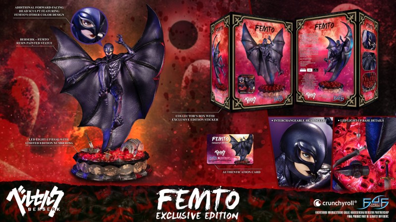 以各類熱門電玩動漫為主題,發行精美角色雕像作品的英國 First 4 Figures 玩具公司,在以日本動畫《烙印勇士》為主題的「黑衣劍士凱茲」、「骷髏騎士」等精彩作品後,又將推出第三彈「費蒙特」全身場景雕像,共有標準版/獨家版雙版本,預計將於 2023 年第三季度發售。
