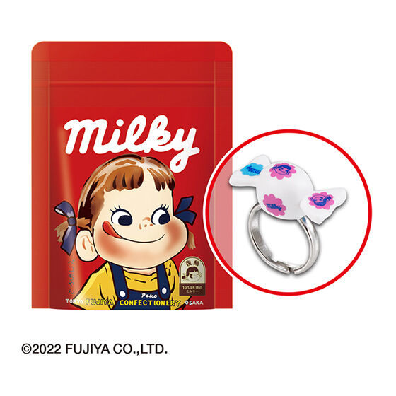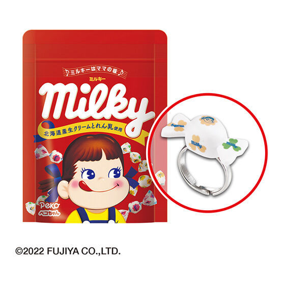 「Ringcolle!不二家糖果 戒指收藏」轉蛋,將不二家旗下人氣的餅乾糖果轉蛋化,連產品包裝也微縮還原~收錄有:經典款 Milky牛奶糖、復刻版Milky、香草巧克力曲奇餅乾、HOME PIE家庭千層派,以及草莓口味LOOK巧克力 五款戒指,將繽紛的糖果餅感化為可愛造型戒指,戴在手上會忍不住想吃零食的衝動吧!