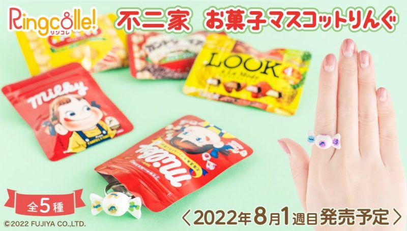 萬代公司轉蛋事業部 GASHAPON,旗下將戒指化為轉蛋收藏的「Ringcolle!」系列,繼LOTTE 小熊餅乾後,再度以日本老字號糖果品牌 不二家為主題,推出「Ringcolle!不二家糖果 戒指收藏」轉蛋~款式共有五種,一轉參考售價為 300 日圓,預計於 2022 年 08 月上旬開轉。