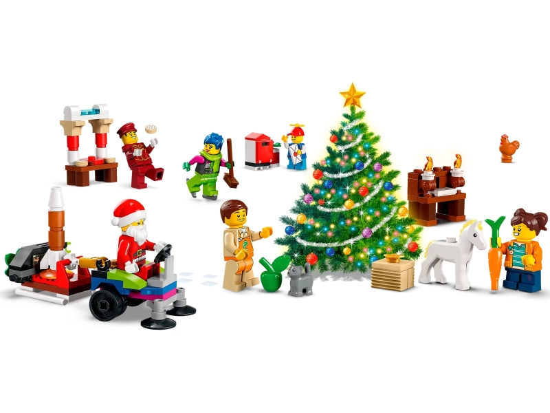 最適合留到每年 12 月才開始慢慢玩的「聖誕降臨曆」除了可以讓玩家收藏到節慶特別版本的人偶之外,利用少少零件所拼湊出來的迷你模型也常常會有令人意想不到的厲害巧思;今年「城市系列聖誕降臨曆」附上了一些動物、農作,可以跟 6 月推出的「農場主題」盒組相互搭配遊玩,而像是聖誕樹、鋼琴、用來烤棉花糖的火堆、玩具馬、雪橇......等迷你模型也十分可愛,人偶部分包含聖誕老人與出自《樂高城市大冒險 (Lego City Adventures) 》的多位角色,水果商 Mr. Producé、門僮 Tippy 的人偶都好讚!