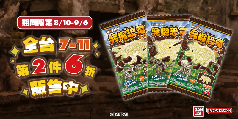 沒辦法到現場共襄盛舉的玩具人也別難過,因為全台的 7-11 也將推出「發掘恐龍巧克力風味糖 第二件六折」的優惠,讓你炎炎夏日,自己在家吃巧克力也能充滿樂趣~和家人朋友一起買第二件、一起挑戰更好玩!