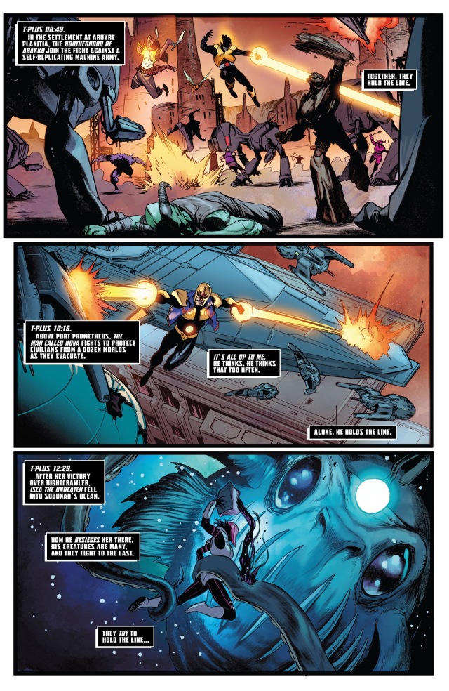 在其他地方,阿拉科兄弟會(Brotherhood of Arakko)、剛好在此的新星(Nova)以及索布納的眷屬們都在試著抵擋攻勢。