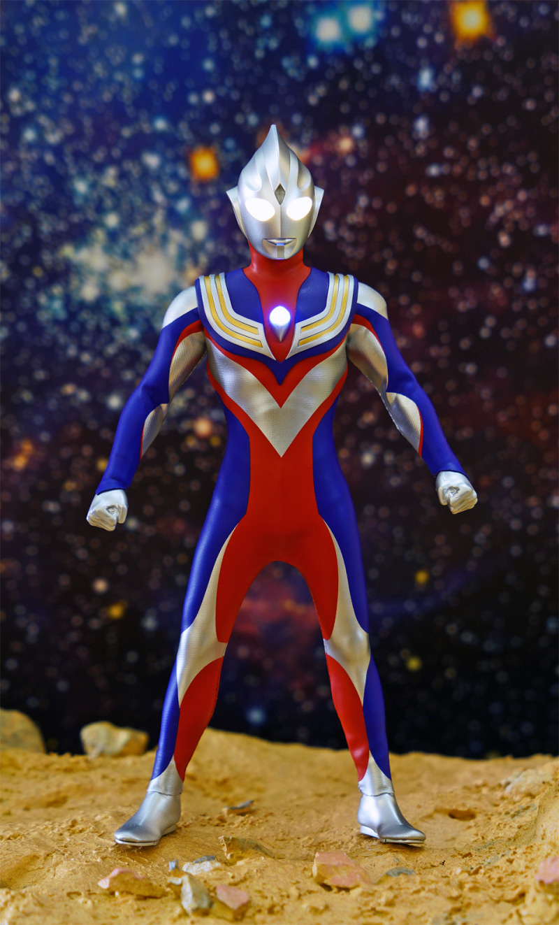 超人迪加內藏 42 個可動關節,使用拉賈布料 (LYCRA),跟真實皮套人材料一樣,解決容易爆裂問題。主體及鞋以人手包布方法製造,令皮套展現真實效果。腳低利用磁石固定方法,方便擺出不同造型及增加靈活性,提高玩樂樂趣。另身體內藏 LED,跟原著一樣有 3 分鐘燈效效果 (由藍轉紅),利用變身器磁控控制,操作簡易。另附上光線發射時的特效件,並採用幻彩噴漆增加了立體效果。